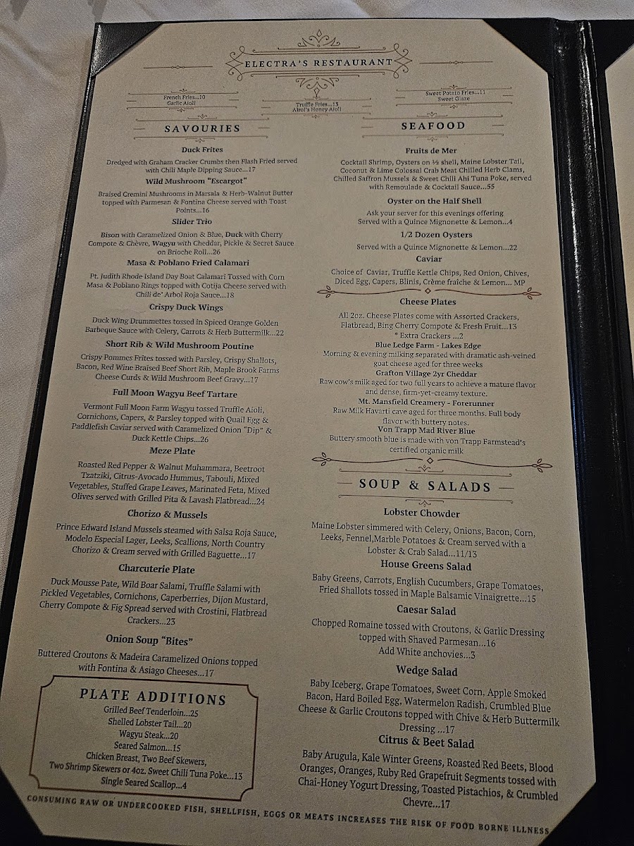 Step into the world of Electra's Restaurant Menu and get ready for a culinary journey that’s as comforting as it is exciting. Located at 5247 Shelburne Rd in Shelburne, VT, this menu invites you to explore a mix of classic favorites and inventive twists that keep things interesting. From hearty appetizers to fresh, flavorful mains, each dish seems crafted to make you linger just a little longer over every bite.